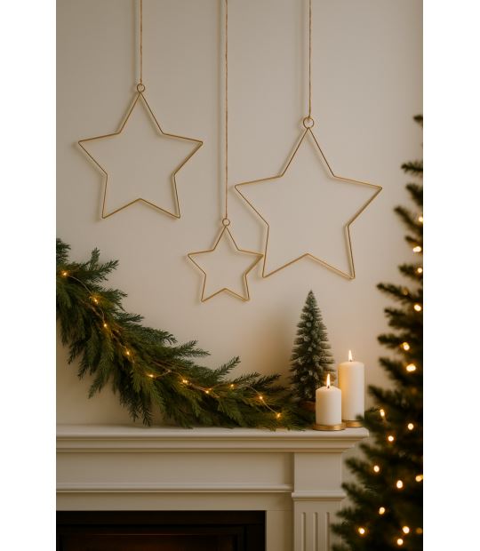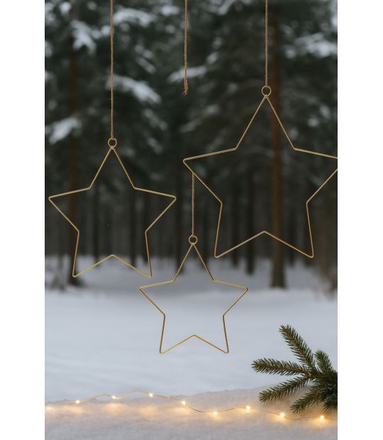 Dodaj wyjątkowego blasku swojej aranżacji dzięki dekoracyjnym gwiazdom wykonanym z aluminium. Ich minimalistyczna, pięcioramienna forma i złote wykończenie sprawiają, że świetnie komponują się zarówno w świątecznych, jak i całorocznych dekoracjach. Idealne do zawieszenia w oknie, na ścianie lub jako efektowny element kompozycji świetlnej.