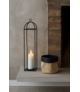 Lampion metalowy, o ażurowej strukturze, przypominający klatkę, ze szklanym cylindrem wewnątrz, dzieki któremu paląca się w środku świeca nie zgaśnie i jest bezpieczna. Lampion jest idealny na świeczkę typu tealight jak i na tradycyjną w kształcie walca.