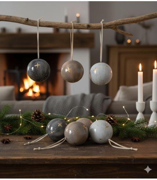 Wyjątkowa bombka wykonana z naturalnej terakoty w modnych kolorach ziemi. Doskonała dla miłośników stylu Rustic Hygge i minimalistycznych dekoracji świątecznych. Surowa, matowa struktura gliny i elegancka, jasna skórzana zawieszka tworzą unikalny, rzemieślniczy akcent.