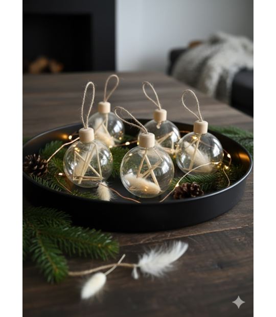 Zestaw 3 transparentnych bombek szklanych wypełnionych jasnymi, suszonymi trawami. Idealne dla miłośników stylu Natural Boho i Hygge.