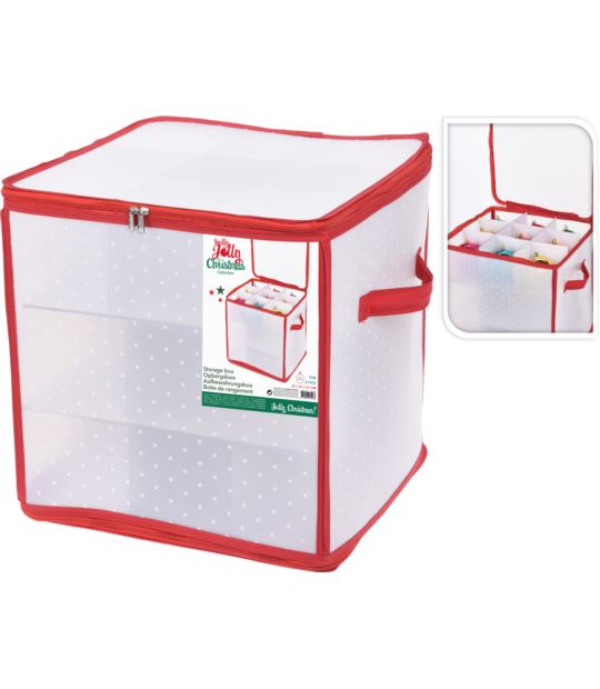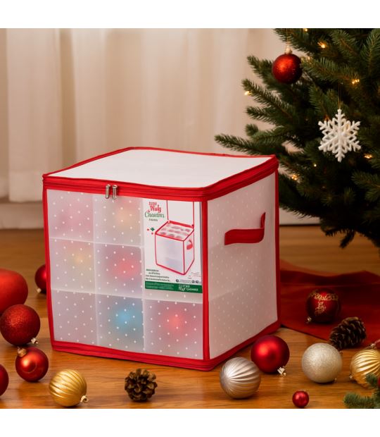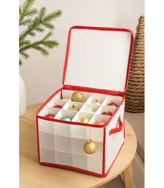 Dzięki eleganckiemu, czerwono wykończonemu obramowaniu oraz zamkowi błyskawicznemu, Twoje ozdoby będą nie tylko bezpieczne, ale i estetycznie przechowywane aż do kolejnych świąt.