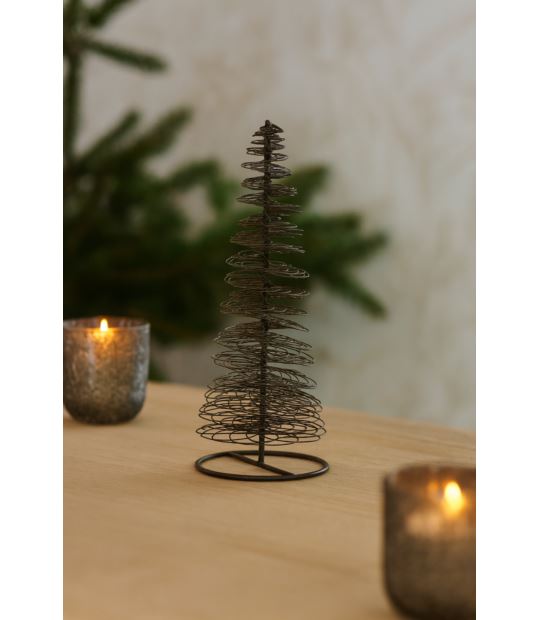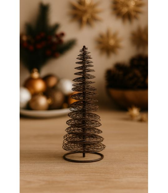 Metalowa choinka spiralna w kolorze brunatnym to elegancka i nietuzinkowa dekoracja, która świetnie sprawdzi się w świątecznych aranżacjach. Jej przestrzenna forma i delikatna, spiralna konstrukcja nadają wnętrzu lekkości i nowoczesnego charakteru. Idealna jako samodzielna ozdoba lub element większej kompozycji świątecznej – na stole, komodzie czy w witrynie sklepowej.