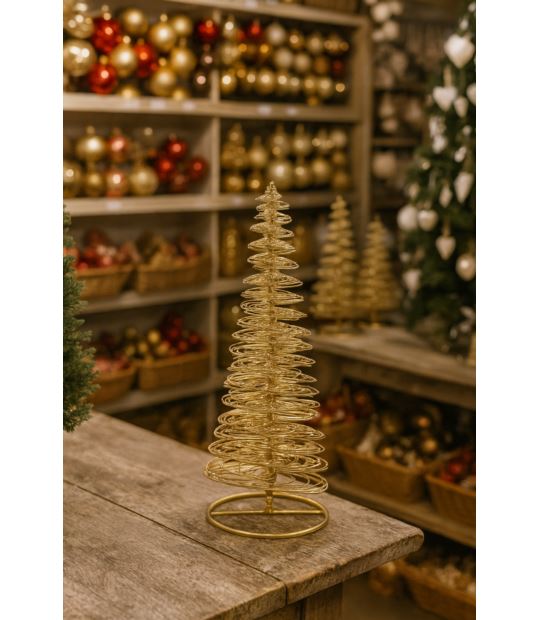 Metalowa choinka spiralna w kolorze mosiądzu to elegancka i nietuzinkowa dekoracja, która świetnie sprawdzi się w świątecznych aranżacjach. Jej przestrzenna forma i delikatna, spiralna konstrukcja nadają wnętrzu lekkości i nowoczesnego charakteru. Idealna jako samodzielna ozdoba lub element większej kompozycji świątecznej – na stole, komodzie czy w witrynie sklepowej.