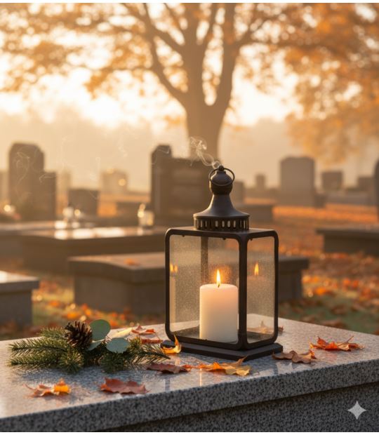 Latarnia brunatna znakomita do położenia na grób w czasie Święta Zmarłych