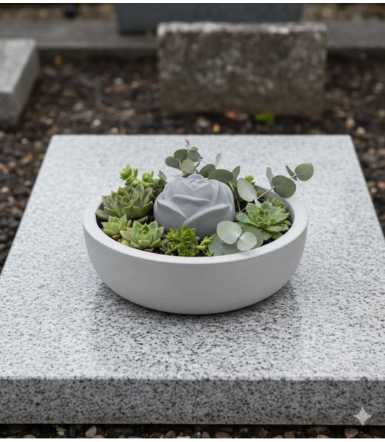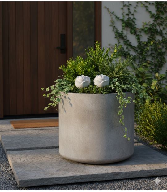Dzięki kompaktowej formie sprawdzi się zarówno jako detal na półce, komodzie, parapecie, jak i jako element większej kompozycji – np. w betonowej misie wśród sukulentów lub jako akcent w minimalistycznej aranżacji kwiatowej.
